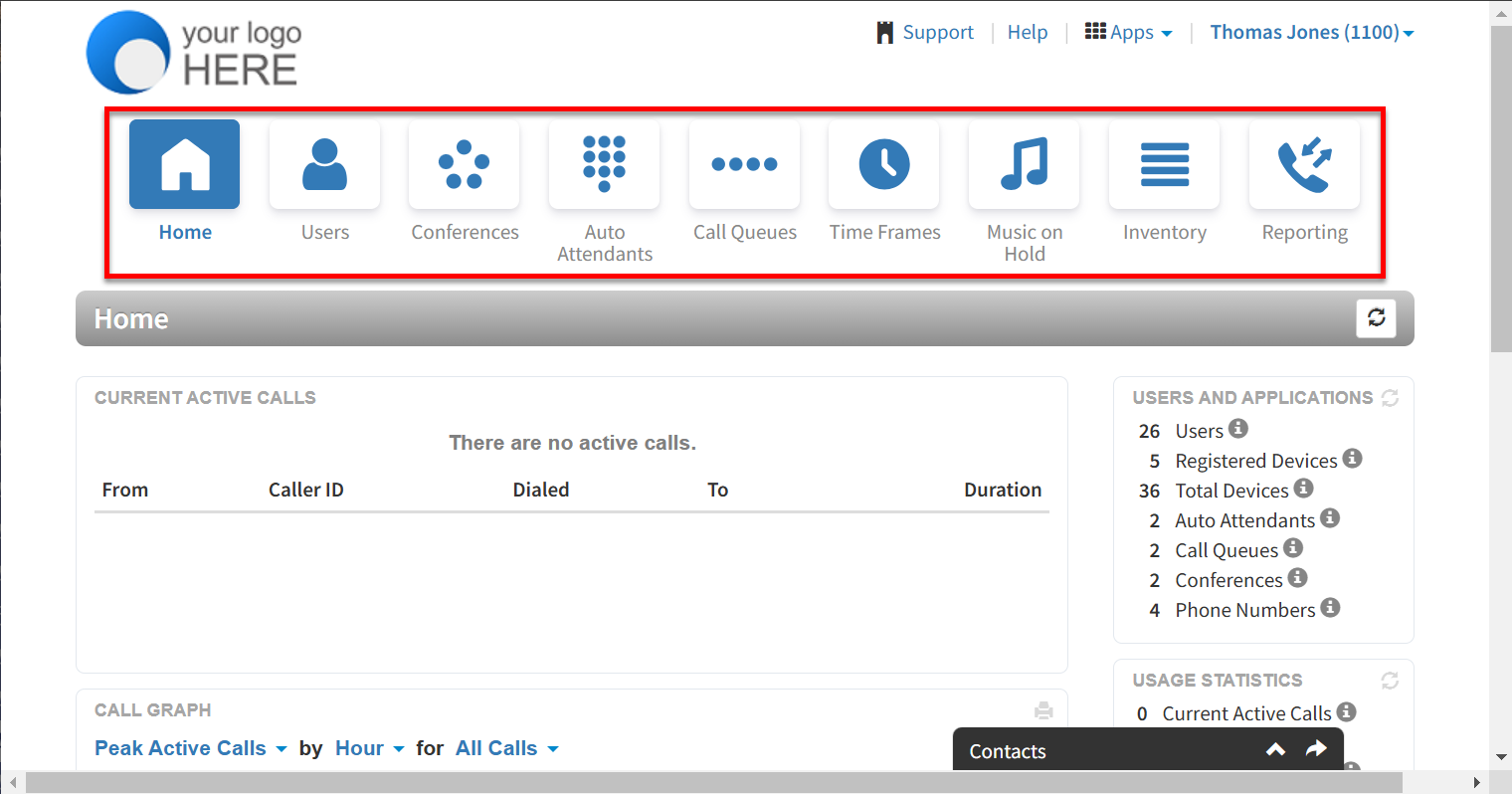 | Shows Call Queues configured in the system, and allows you to add, edit, and delete call queues, add Music On Hold files to call queues, and configure agents associated with call queues. | |