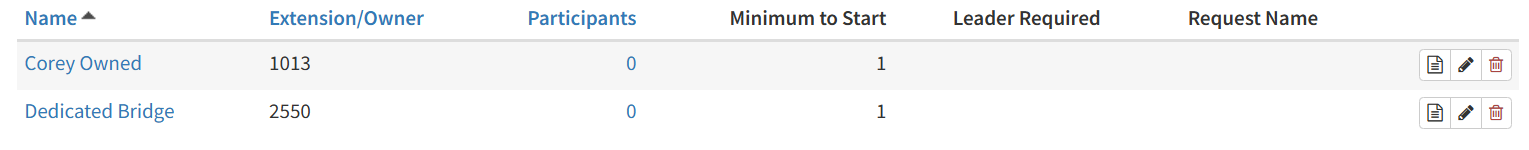 The following procedure describes how to add conferences. When adding a conference, we recommend you require a leader to start the conference; otherwise, anyone with your participant code can use your bridge.