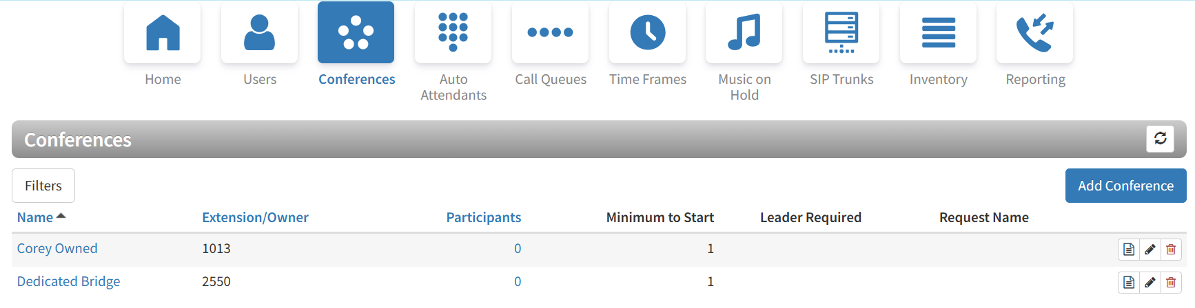 There might be times when you need to edit conferences. For example, you might want to change the leader or participant PIN.