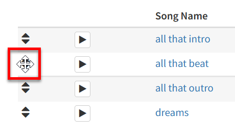 1. On the left side of the Music On Hold page, hover the mouse over the up/down arrows for the file you want to move (the pointer changes to a 4-headed arrow).