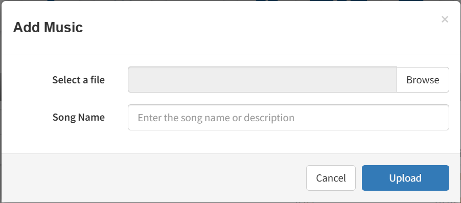 1. From the Music On Hold page, click the Add Music button. The Add Music pop-up window appears.