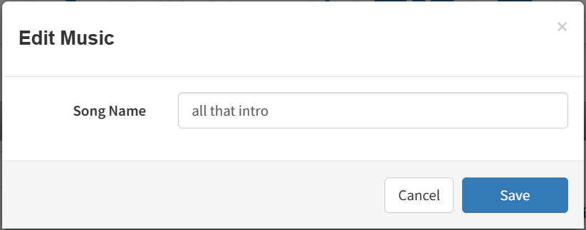 – Click the editicon at the far right of the name of the music to edit. Either step displays the Edit Music pop-up window.