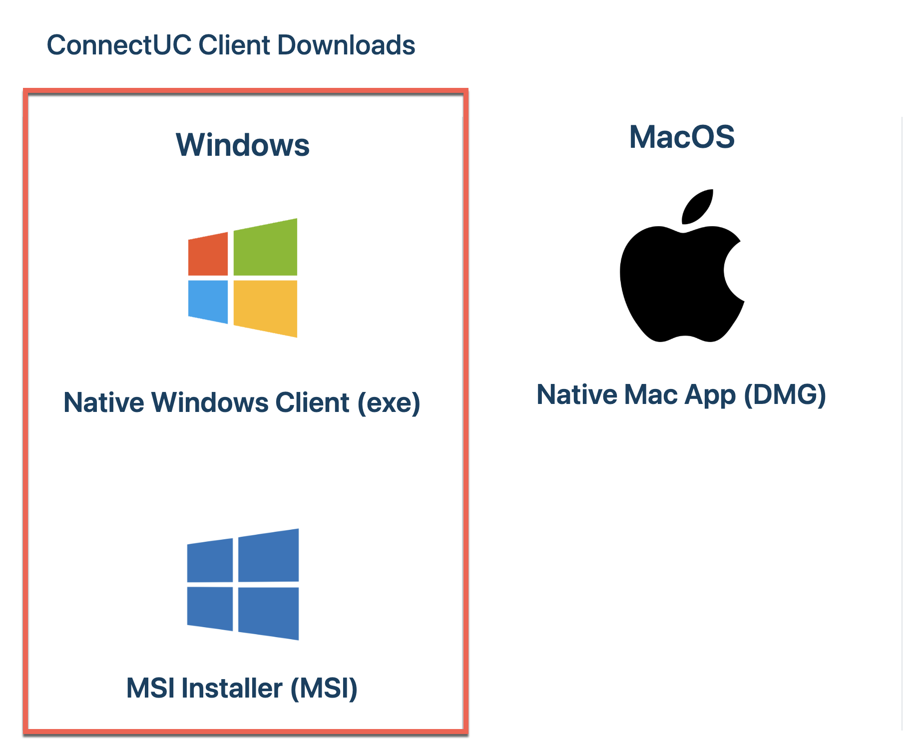 - Download the latest version of ConnectUC Desktop from the downloads page here: https://www.connectuc.io/downloads.php (Windows users may choose either the exe installer or the MSI installer).