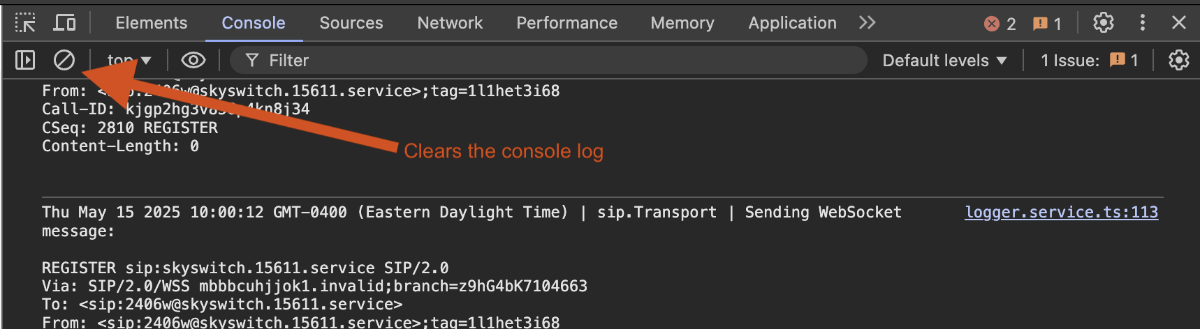 To capture a potential issue clearly, it's a good practice to clear the console log first and then re-create the issue by either refreshing the page or reproducing steps to recreate the issue.