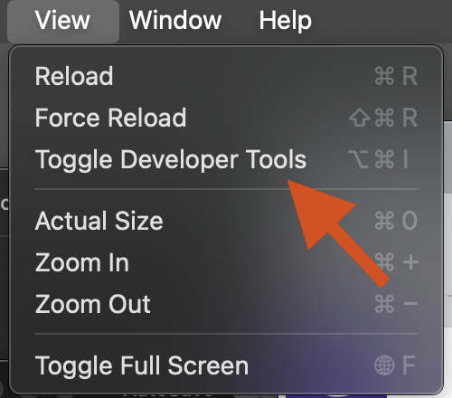 Click on 'View and then select 'Toggle Developer Tools'.